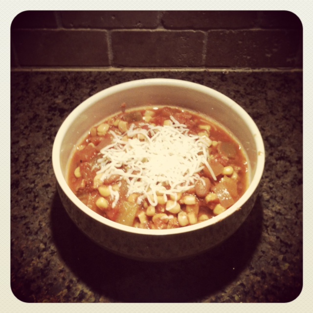 This is another new recipe for me. After the success of the chicken stew, I wanted to try another chicken dish in the slow cooker. I also wanted to make a milder, more kid-friendly batch of chili. Thus, this chicken chili was born. Just like my beef chili, this recipe does not follow the rules of traditional chili and does not fit into any of the regional chili categories. It has chili powder and meat in it. It’s a consistency somewhere between a soup and stew. And, well, that’s pretty much my definition of chili, so that’s what I’m calling it.