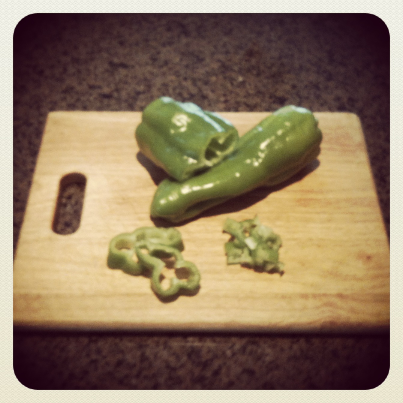 Next, you will want to chop your fresh vegetables. I chop mine into chunks no larger than about a half inch, which makes them fit comfortably on a spoon when you’re eating your chili.