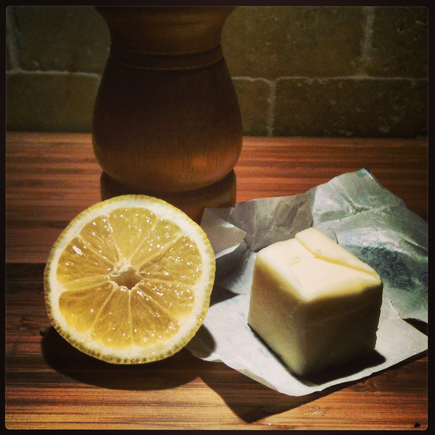 Once the spinach is just wilted and soft, you will add the rest of the butter, the juice of the second half of the lemon and a little more pepper to make the sauce. (Yes, the sauce is basically just melted butter with lemon juice, salt and pepper…but really, what more do you need?)