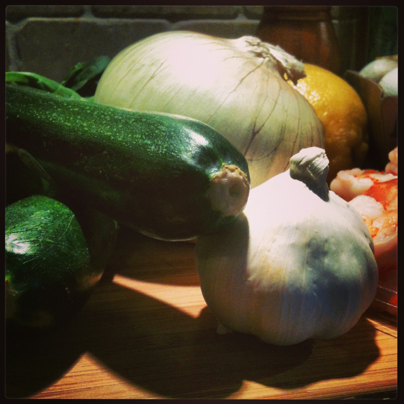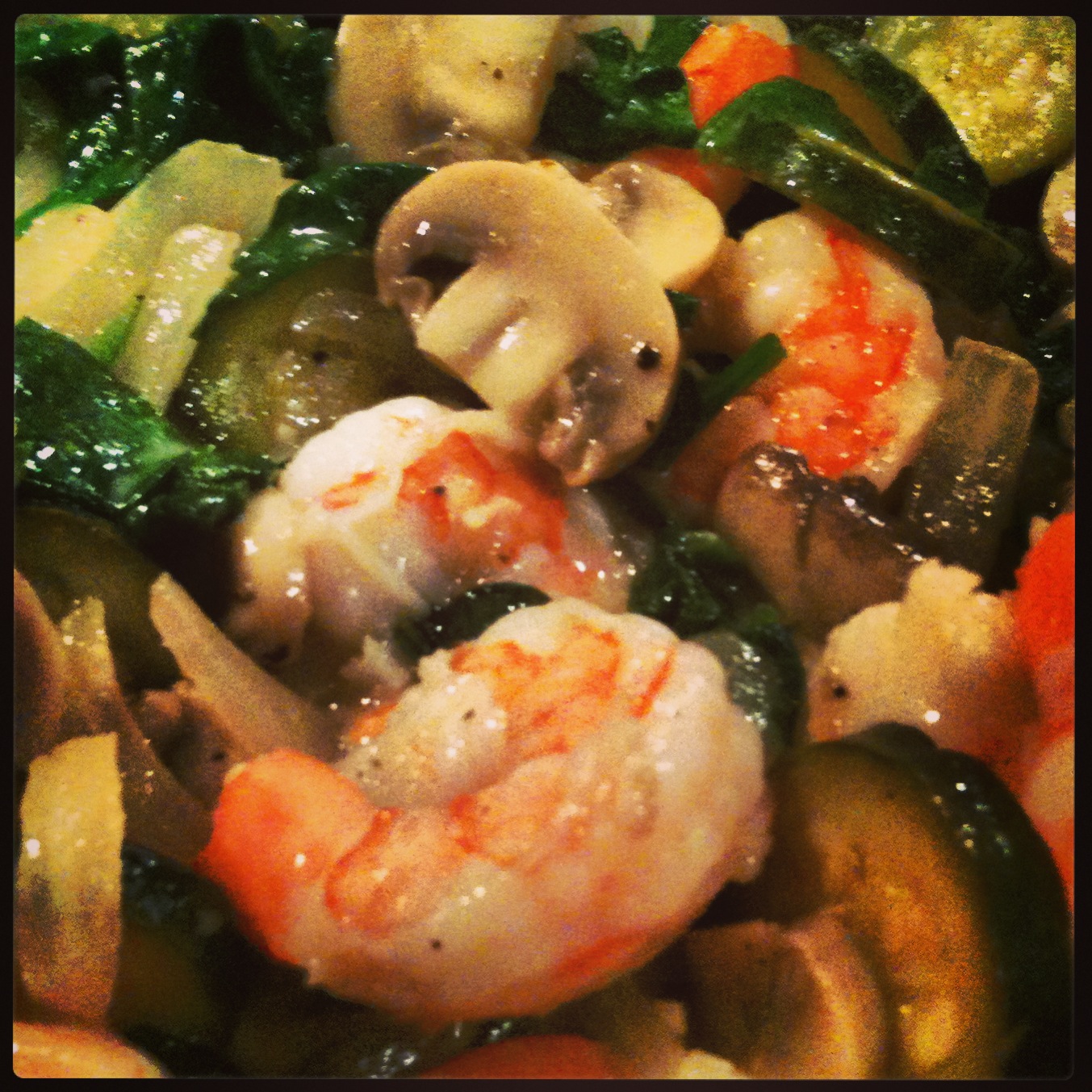 • 3/4 lb of shrimp (I was going to be crunched on time, so I went with pre-cooked shrimp, but certainly raw will work well, if not better. More on that later)