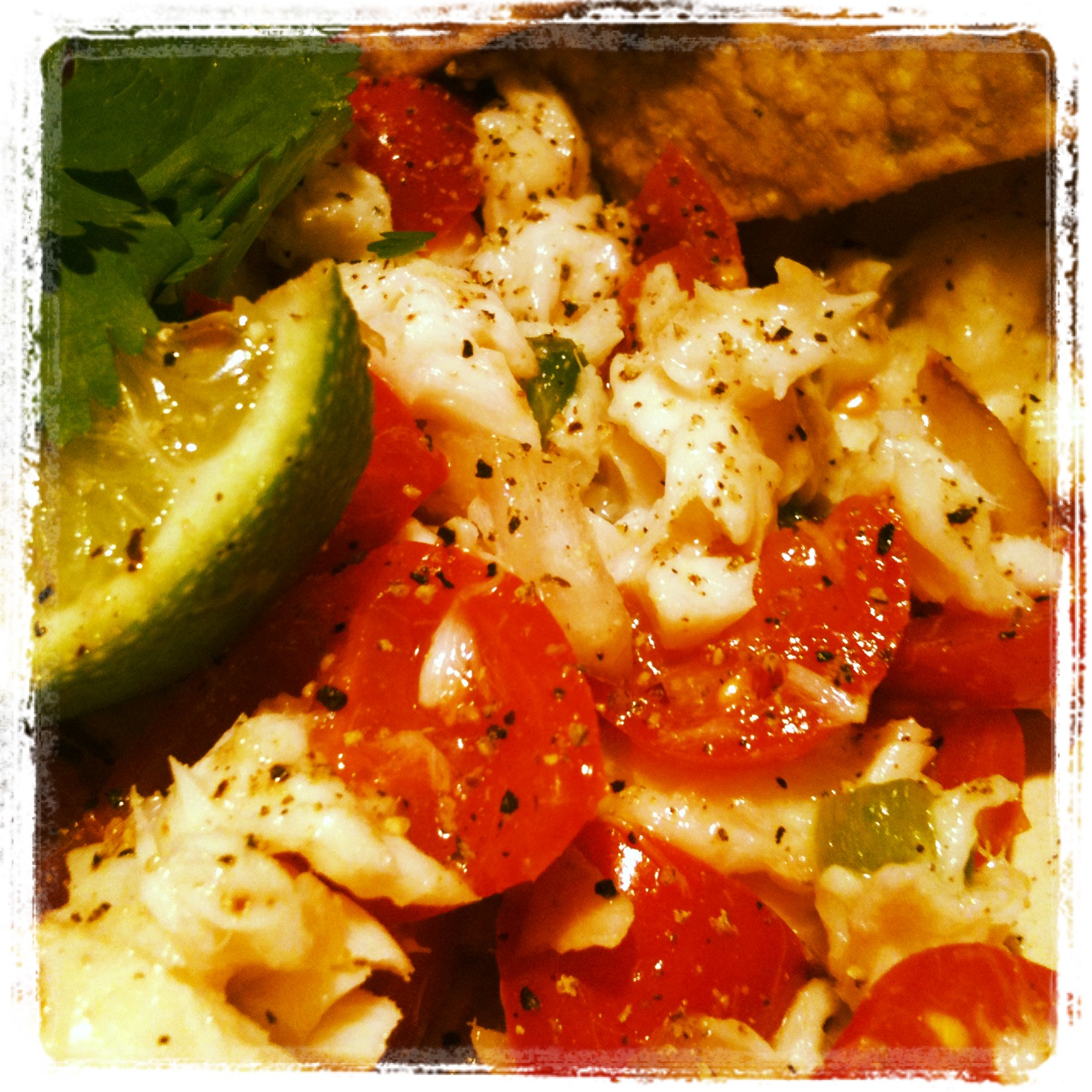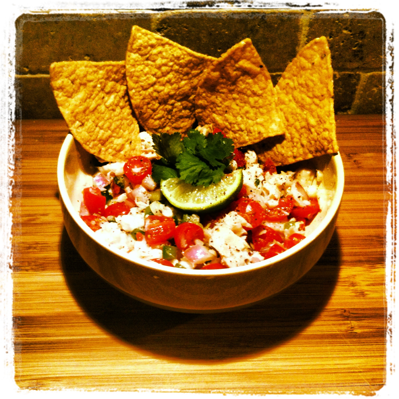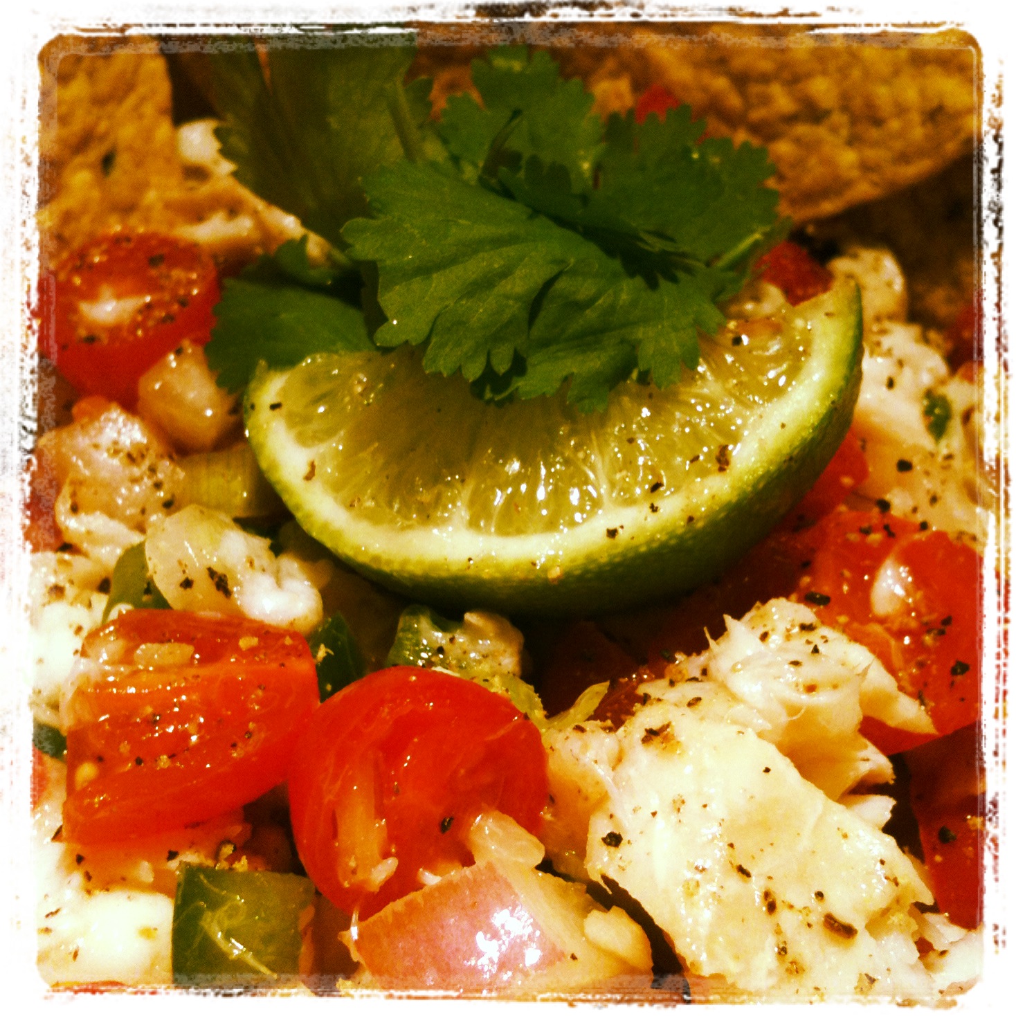 Basically, it was “ceviche” – but not really. Ceviche is created by using raw fish and “cooking” it in an acid like lime juice. This fish was already cooked. But, ceviche sounds better than “cold tilapia I flaked apart and added to some salsa.”