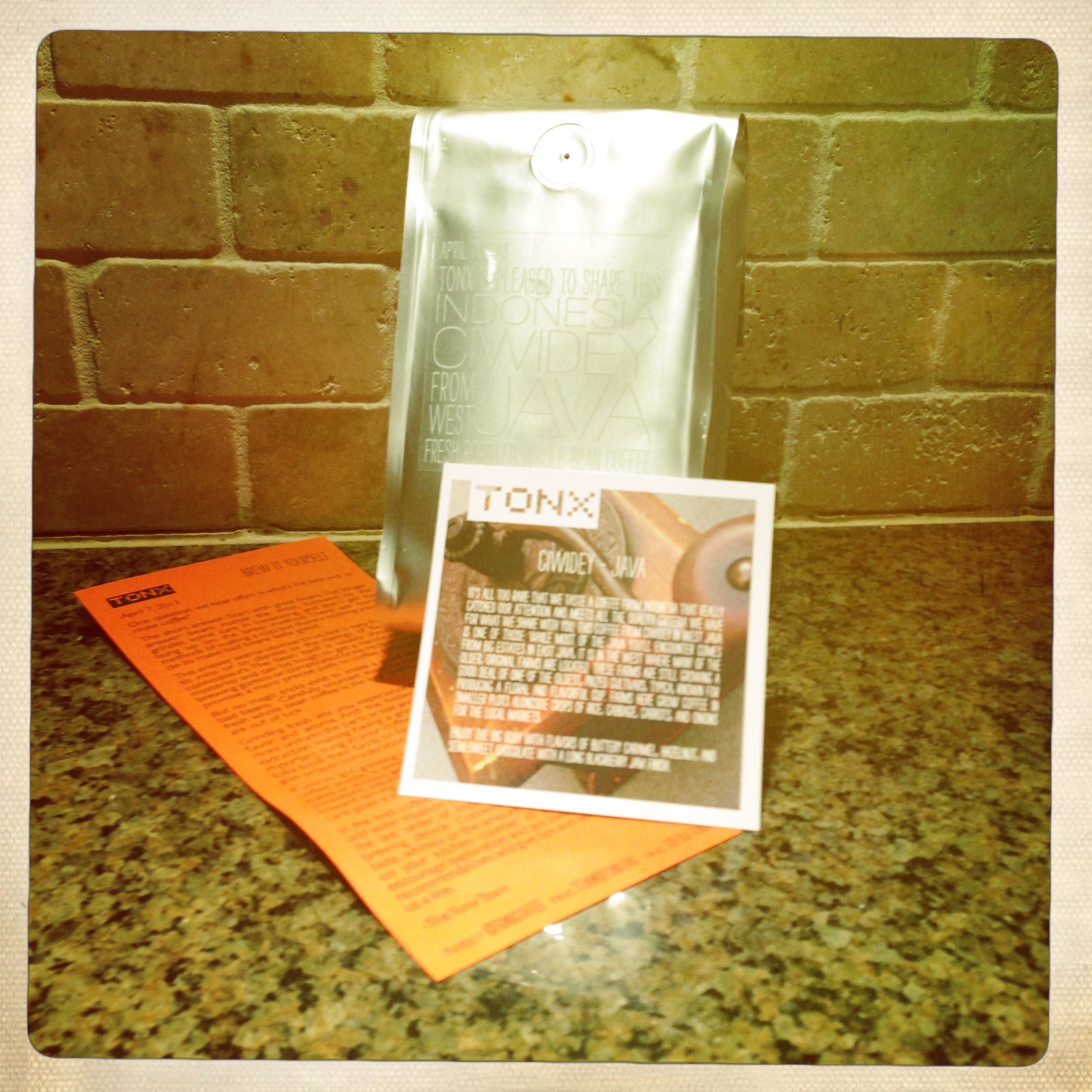 First off, let me say just how much I enjoyed my first full batch of Tonx. It really fulfilled all of my hopes for a mail order coffee service. They are packaged in a resealable bag and come with a nice card describing the growing region and characteristics of the individual beans.