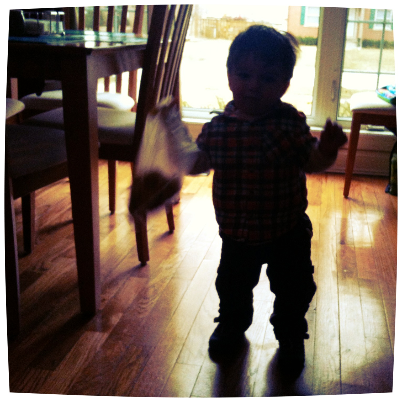 The potatoes shown here are my Easy Roasted Potatoes, and the zucchini is from the Veggie Short Cuts post. The little guy got involved for the first time in the kitchen, helping to shake up the bag of potatoes…