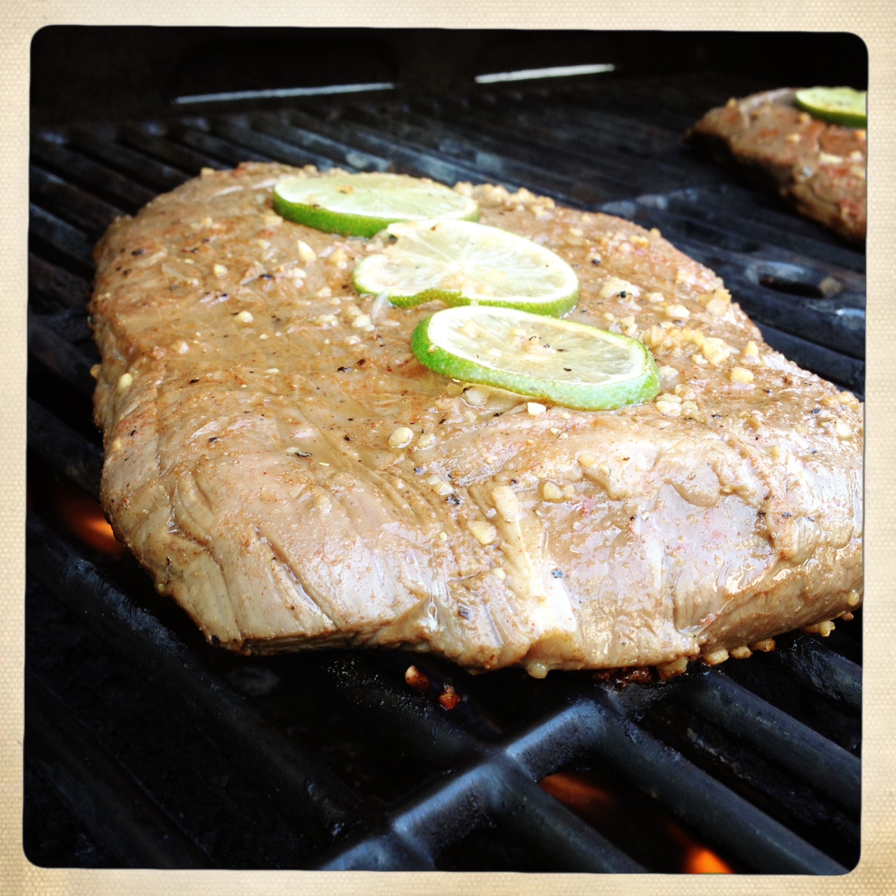 When it’s time to flip the steaks, pull off the limes and discard them. Flip the steaks and continue to cook until they’re done.