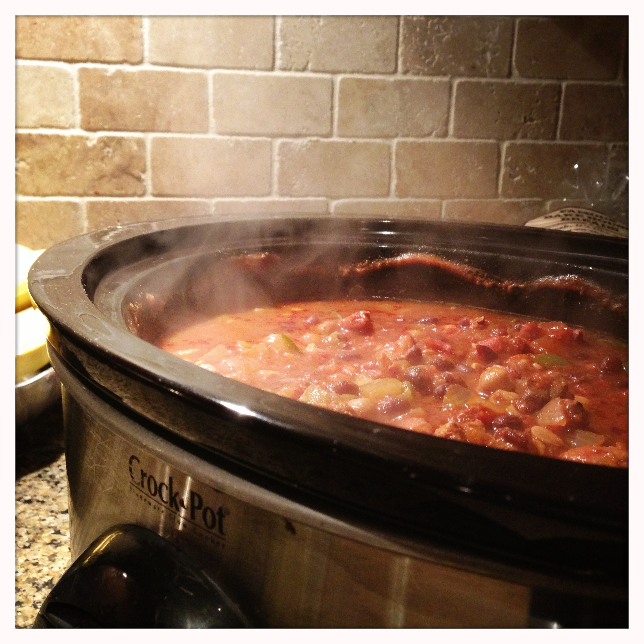 Cook covered on low for 8 hours. Be sure to leave the house at some point during cooking so that you can come back inside to the welcoming aroma of chili cooking. (As mentioned in nearly every post on slow cooker use, this is one of my favorite aspects of using the slow cooker.)