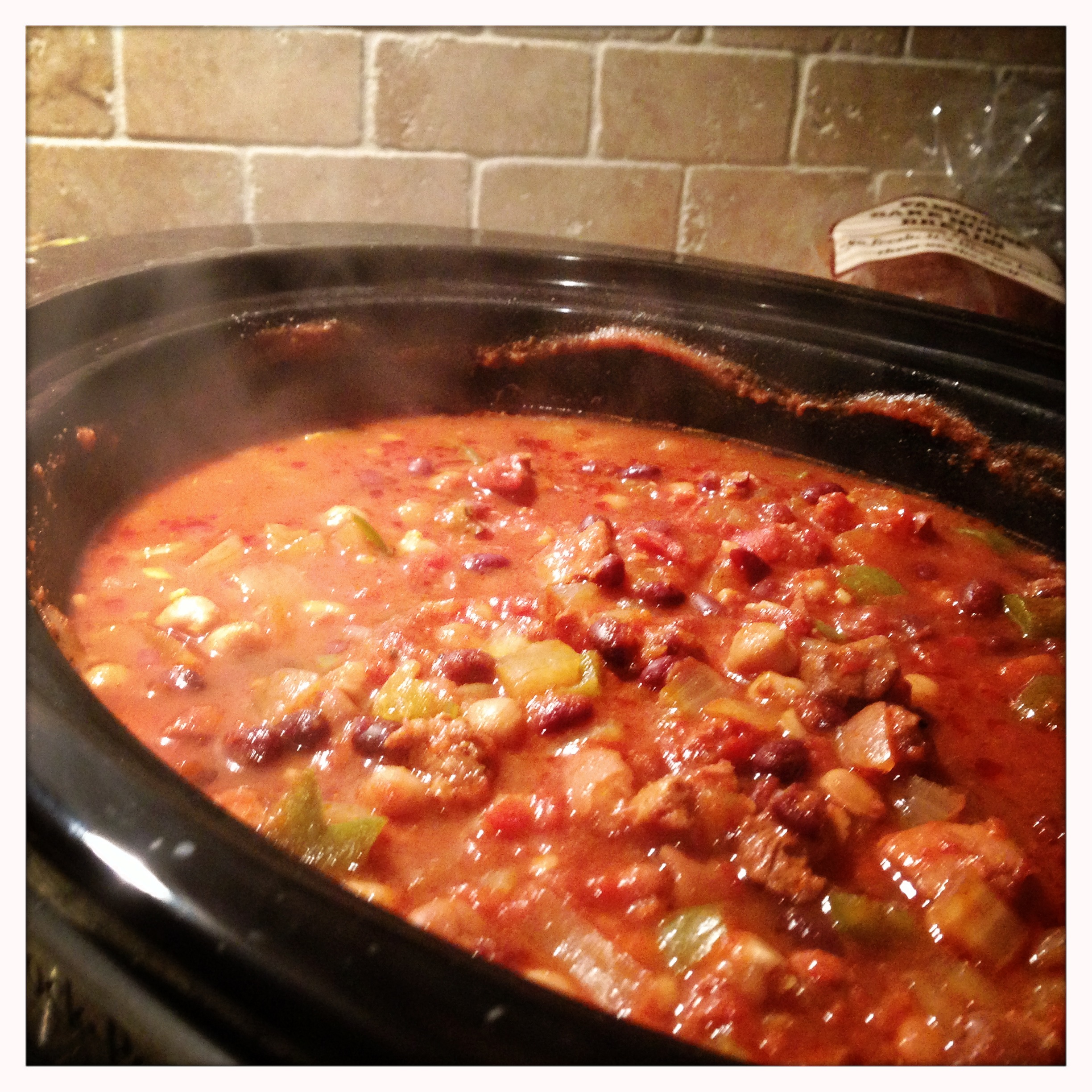 I don’t know if this really qualifies under the definition of chili, but Mexican-inspired chicken and tomatillo stew with peppers and beans is a really long name – so I’m sticking with chili.
