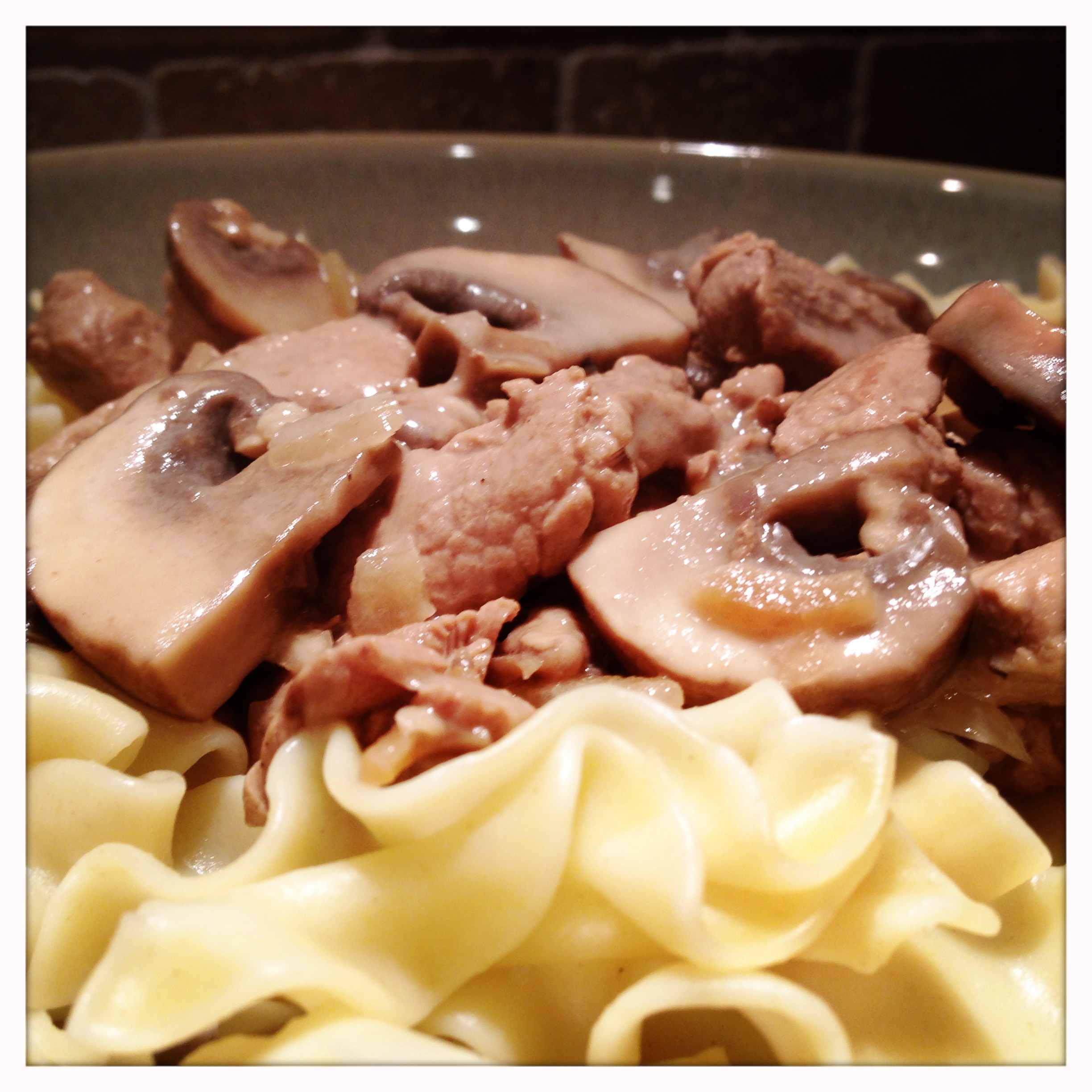 Beef is delicious in a stroganoff because it has a robust flavor that holds up well to the heavy sauce. However, pan cooking beef can be tricky, especially with the more affordable cuts typically used for stroganoff. It doesn’t take much to overcook it and turn it into leather, but undercooked isn’t much better. (I love rare beef as much as the next guy, but red juices running out of the beef mingling with a sour cream based sauce…yeah, not ideal.)