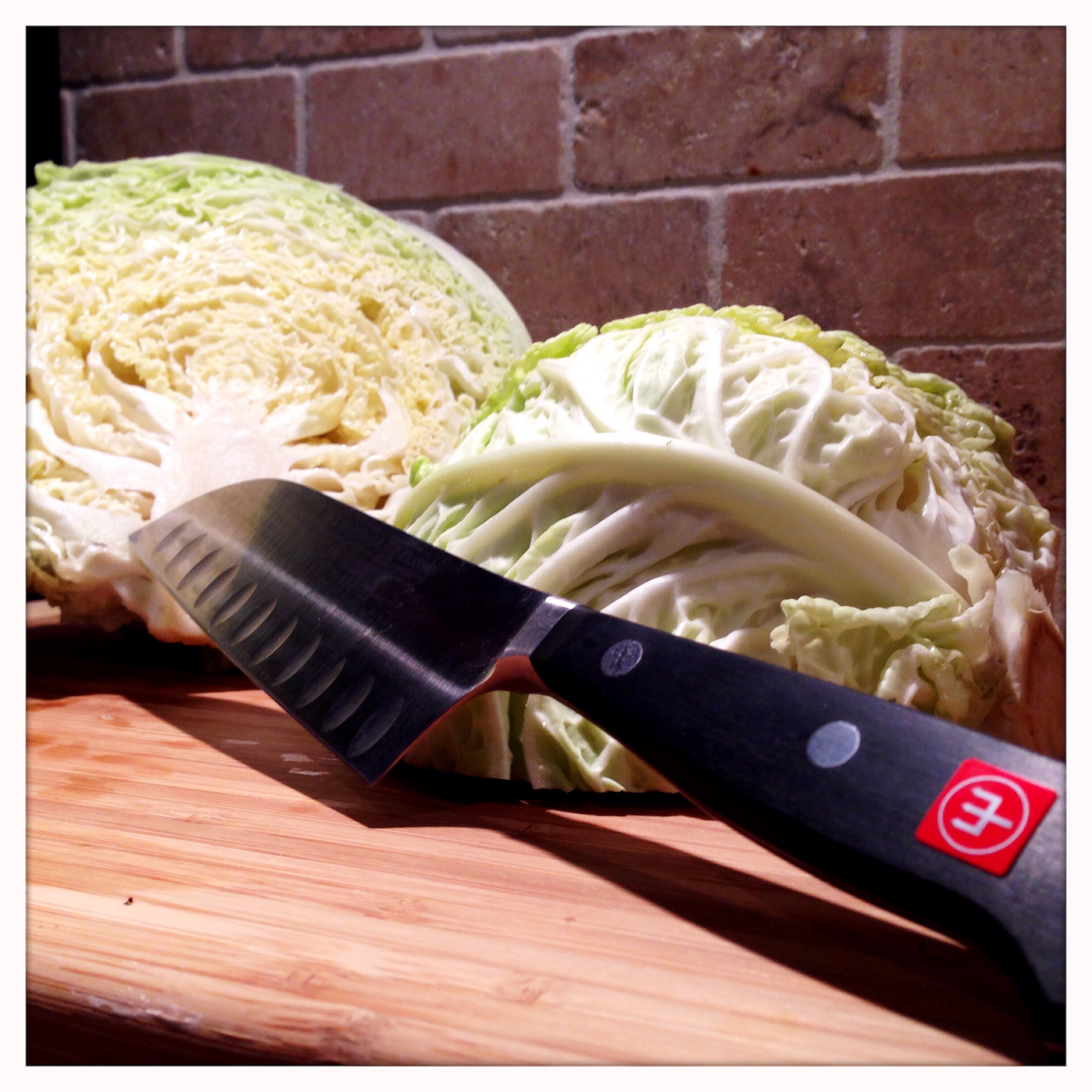 - 1 head of savoy cabbage, stem/core removed, cut into the strips
