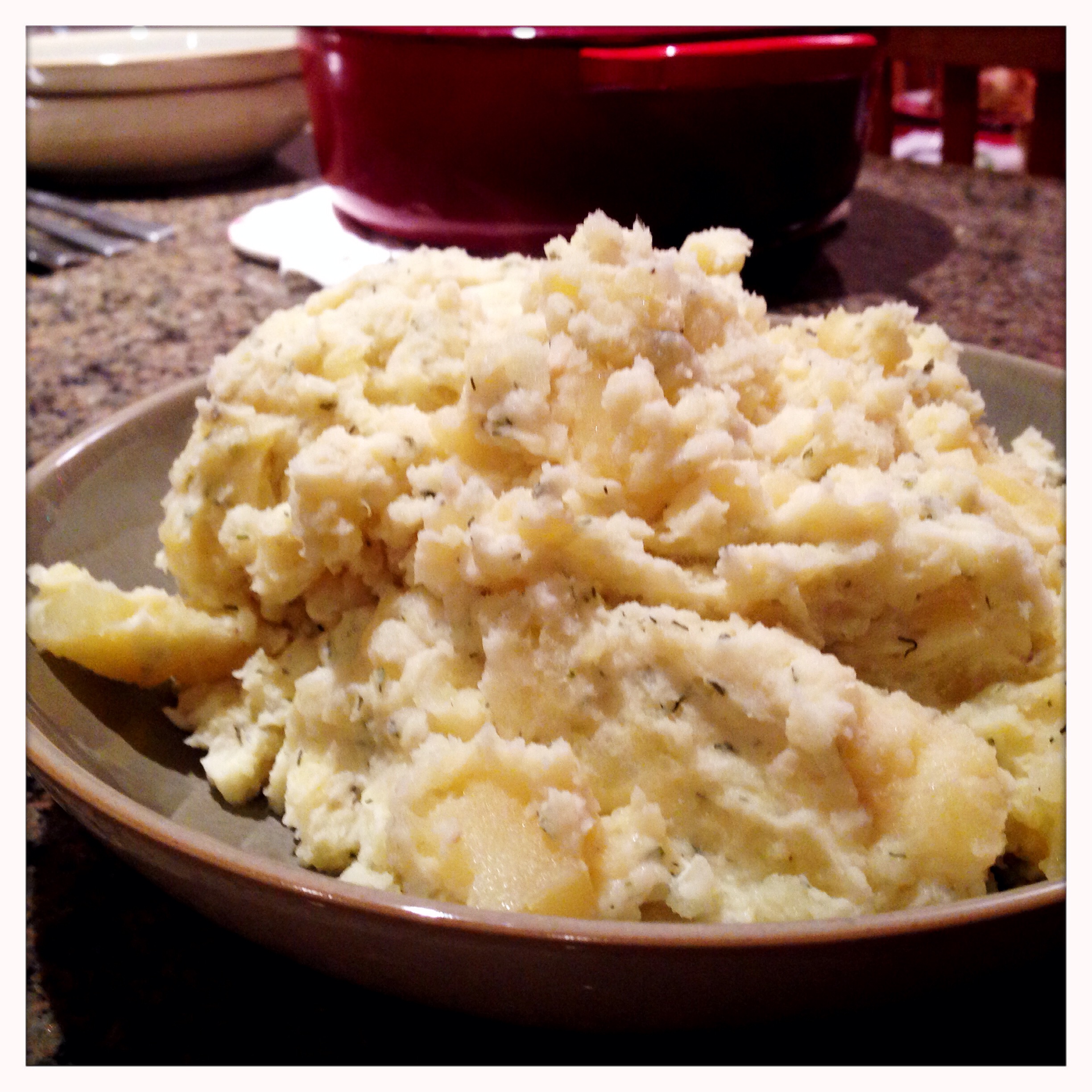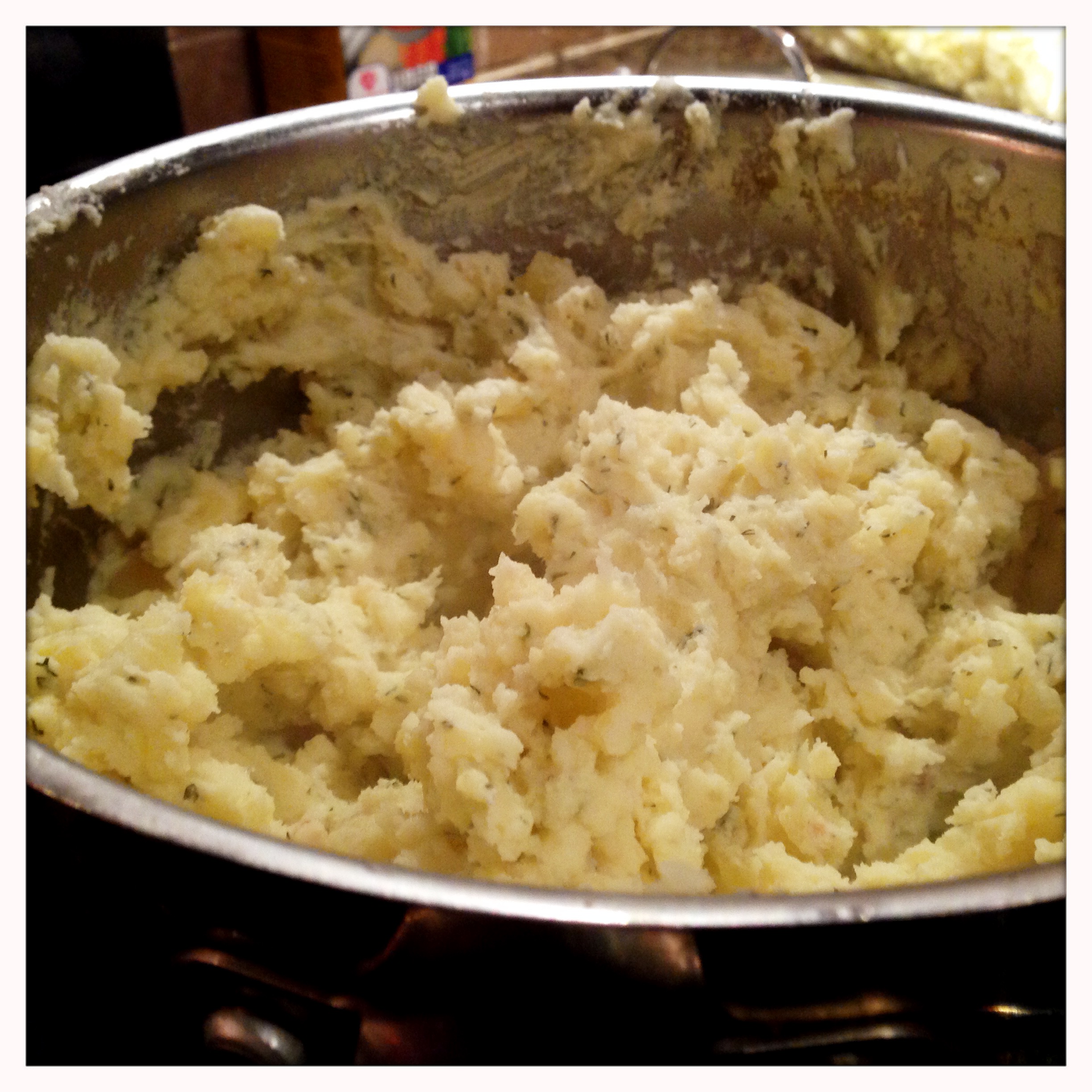 After mashing in the dill dip, taste the potatoes. Continue to add the dip a few ounces at a time until you reach the flavor and consistency you like. I used about 6 oz in mine, but you could easily do more or less to your individual taste.