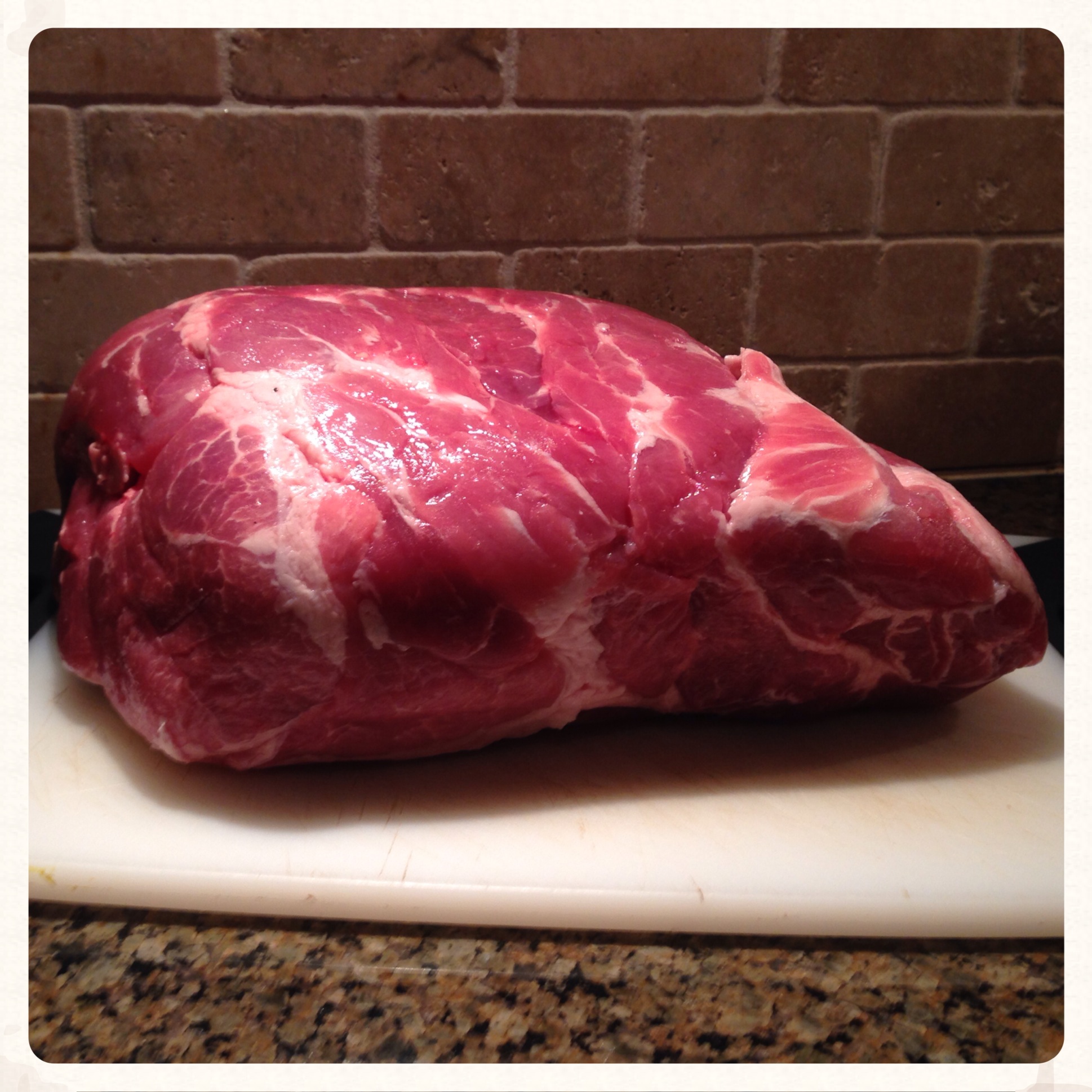 My smoker doesn’t have a numeric thermometer, just a dial that says “warm,” “ideal” and “hot,” but we’re looking for a temp between 225 and 250 (which is rumored to be between the I and the E of IDEAL). Estimate 1 to 1 1/2 hours of time on the smoker per pound. You will also want to add another chunk or two of wood every 45-60 minutes to keep the tasty wood smoke flavor going. (Note: many people soak the chunks before smoking – but this isn’t really necessary with big chunks. If you’re using chips, those definitely need to be soaked first, though.) Most important, minimize the amount of time you open the smoker. Mine is set up such that I can lift the whole body off to add charcoal if needed, which traps heat/smoke inside rather than lifting the lid. There is also a little door on the side, which is perfect for adding wood chunks, but a little small for adding loads of charcoal. I have a hard time not looking at things while they cook, but resisting the urge to open the lid keeps the smoke inside, and your restraint will be rewarded!