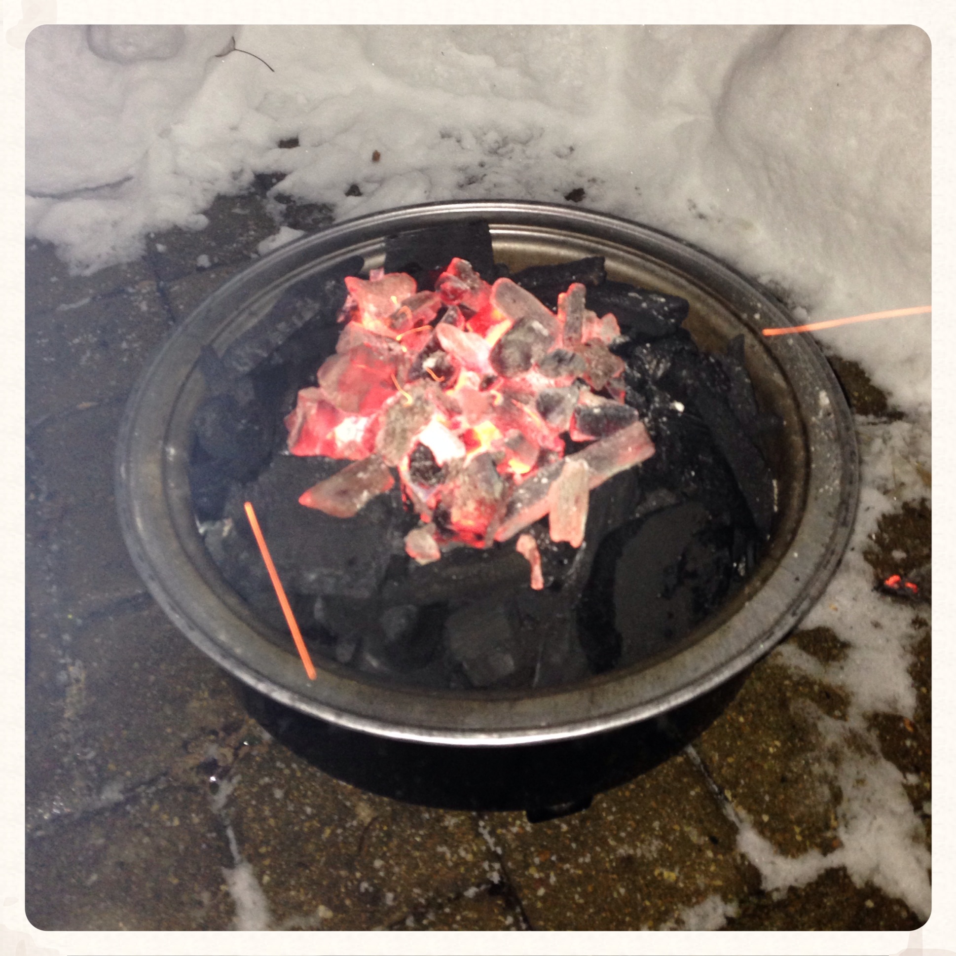 As far as the charcoal, after much research, I settled on natural lump charcoal. While it may not burn as uniformly as the manufactured briquettes, there are no artificial ingredients or binders, and the flavor is supposed to be much better. Even in winter in the midwest, I had no trouble finding a few bags of good lump charcoal at Home Depot.
