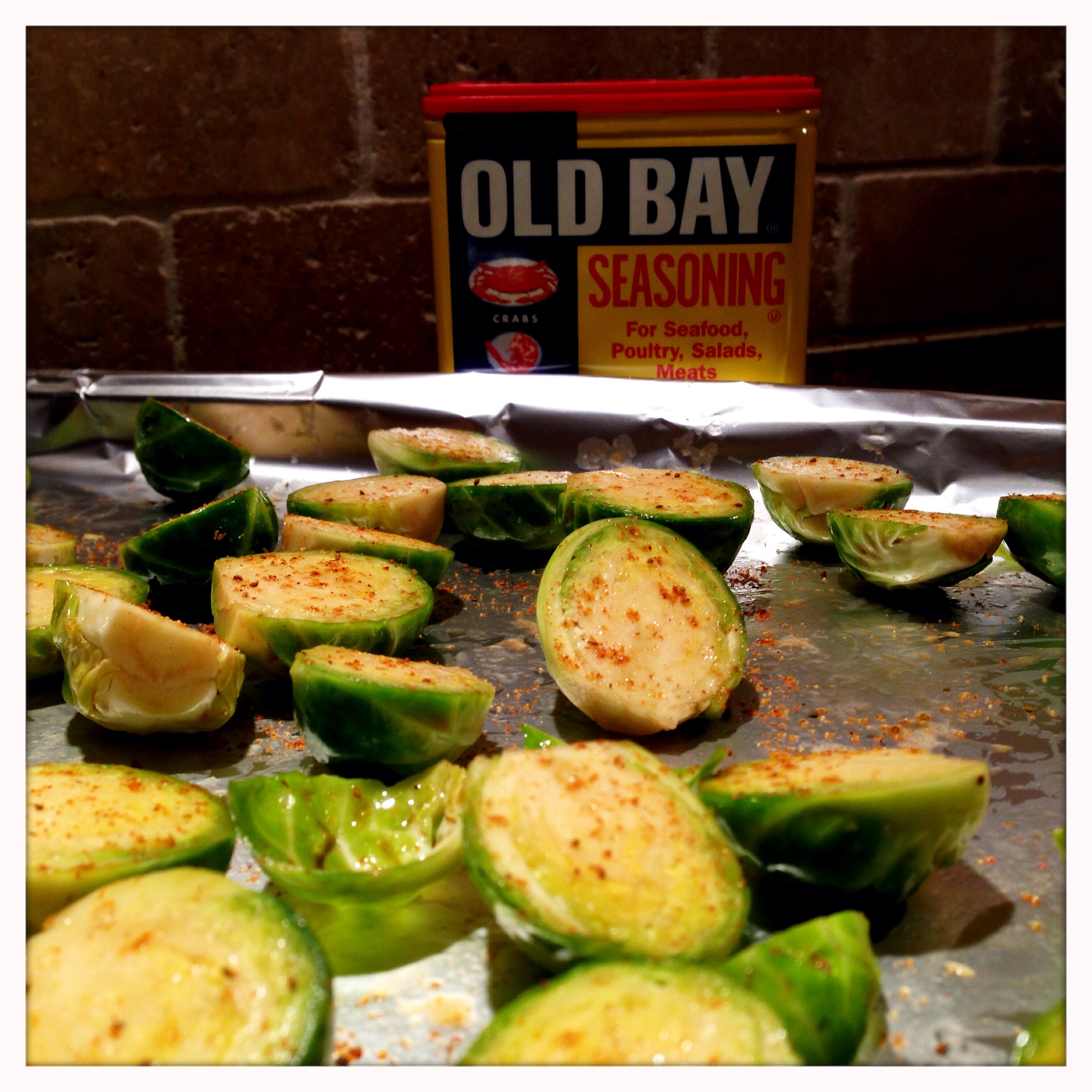 While the muffins are cooking, we can roast any remaining sprouts to serve on the side. Quickly trim the stems and remove any loose leaves from the sprouts. Slice them in half lengthwise and place in a zip top bag with a little olive oil. Shake to coat and the spread the sprouts on a baking sheet. Season to taste. Currently I’m on an Old Bay kick, so I dusted the sprouts with that, but the sprouts will work with just about any seasoning you have a taste for.
