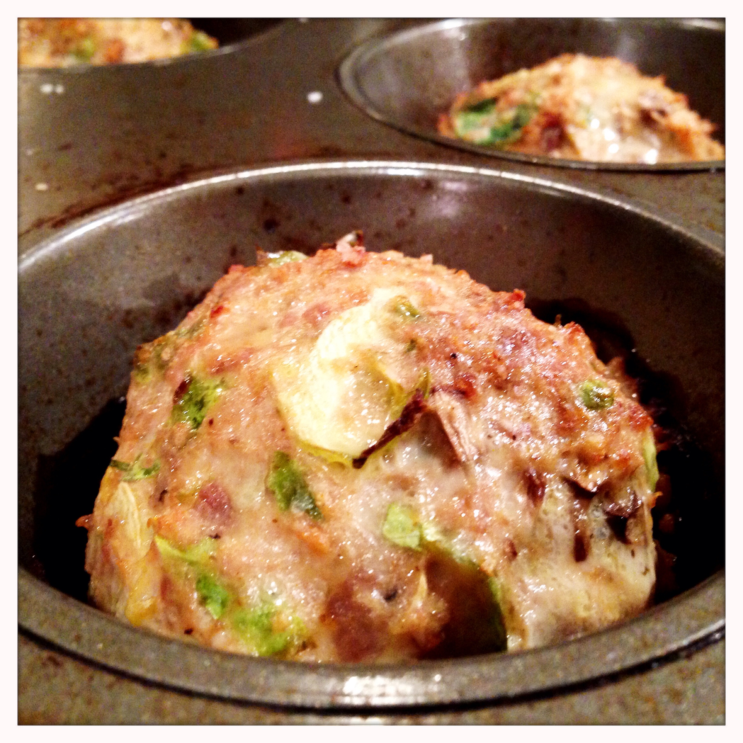 Chicken & Sausage Meatloaf Muffins Stuffed With Brussels Sprouts