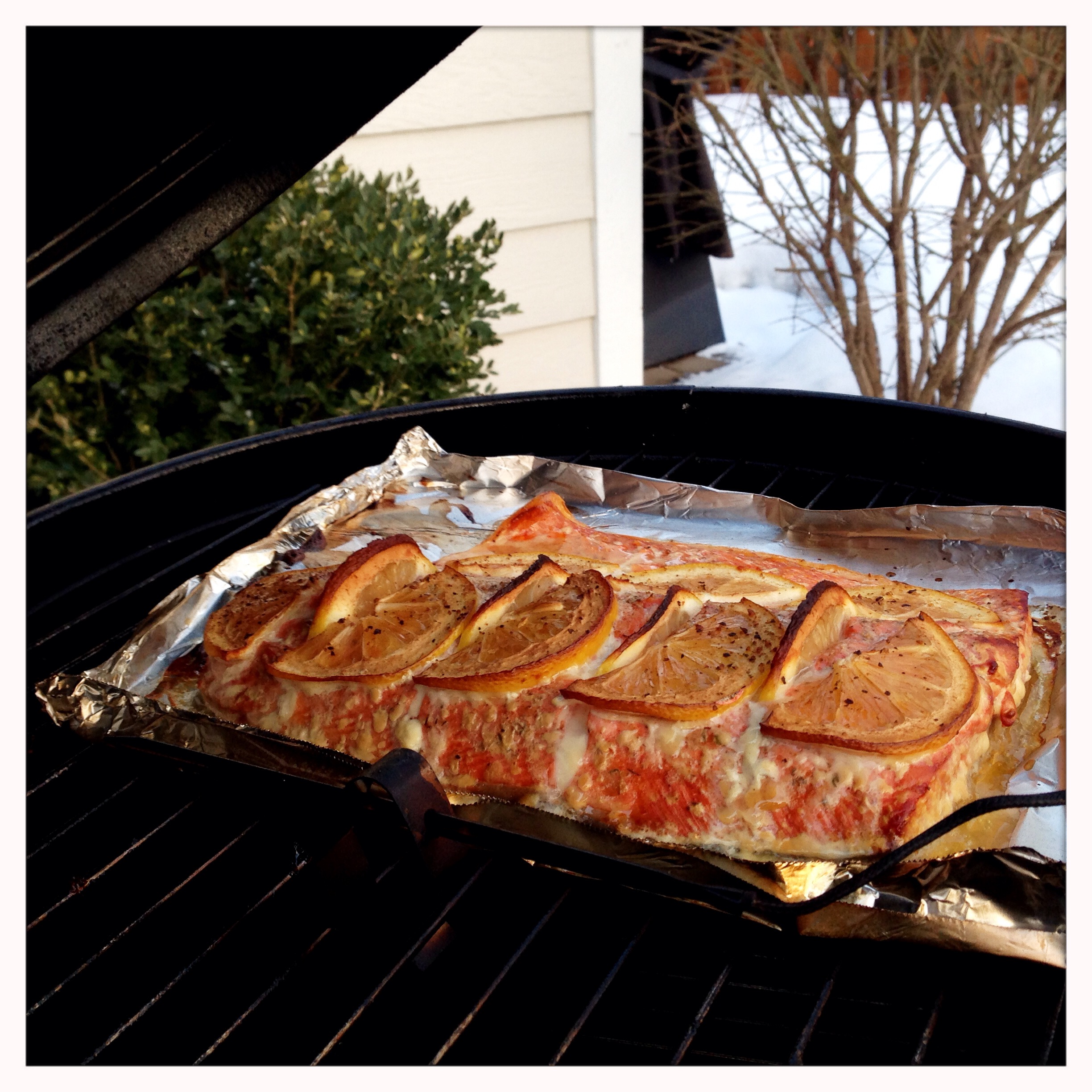 For the food safety folks, the internal temperature was about 155 when I took this fish inside, and it likely rose a few more degrees while I was getting plates ready.