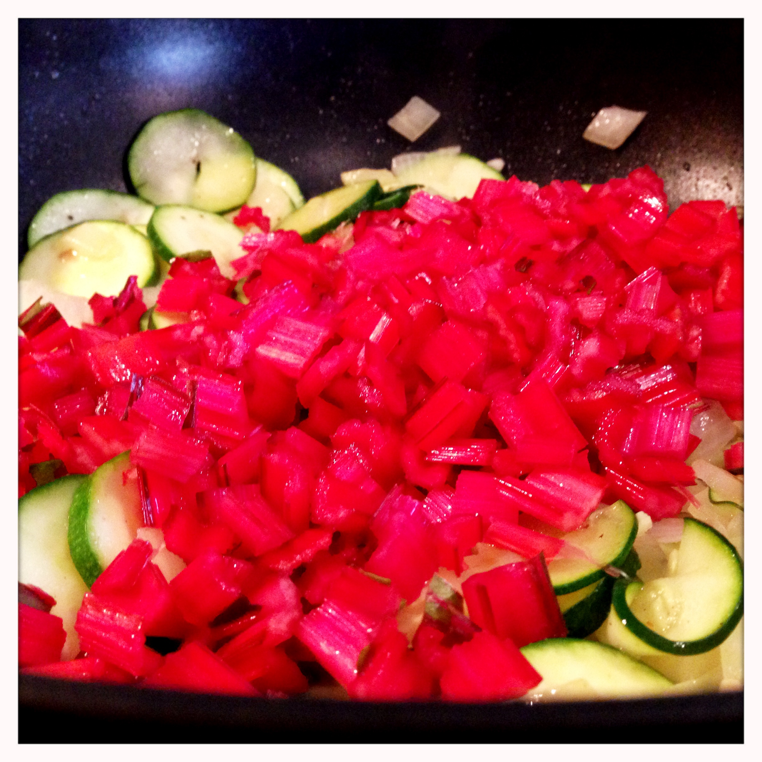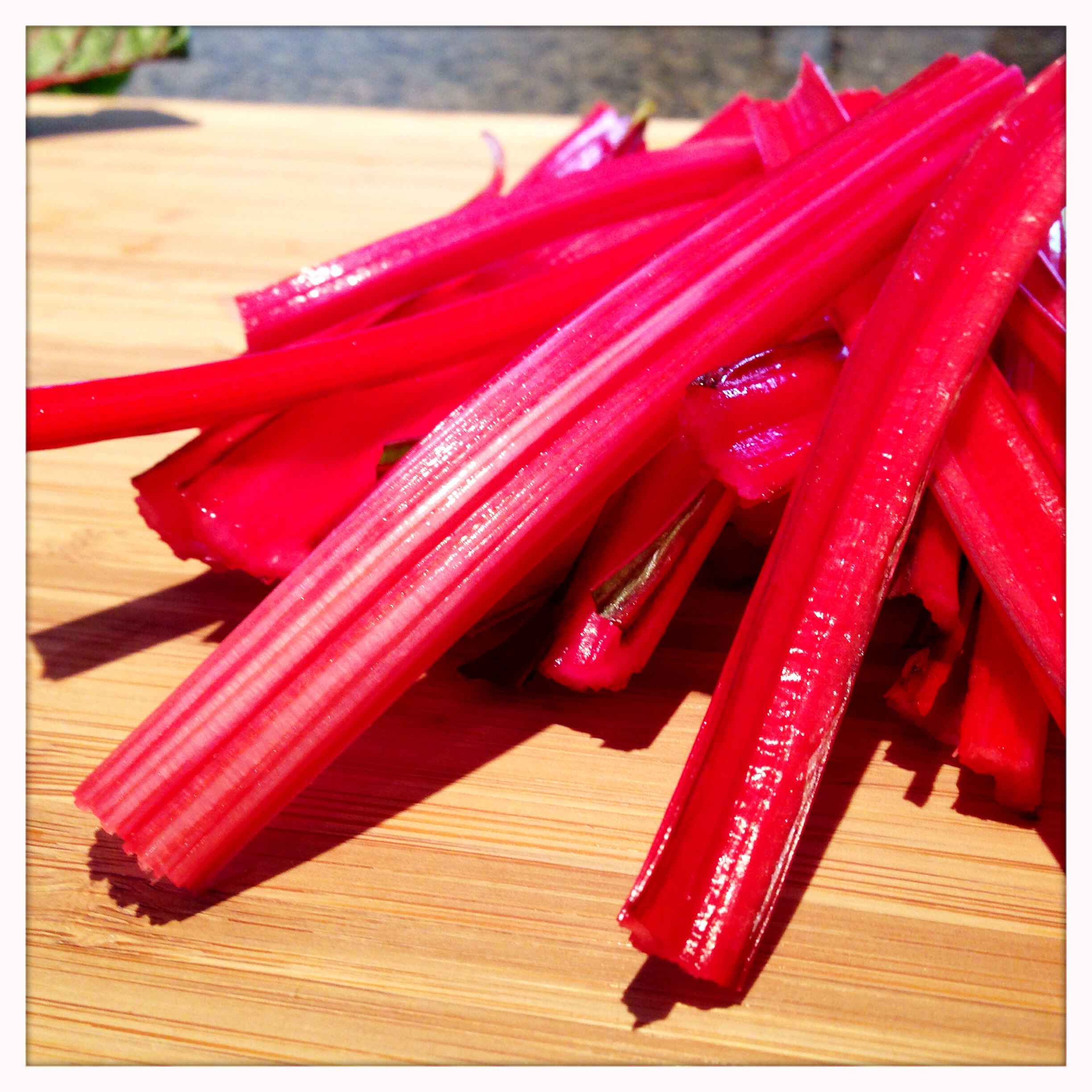Chop the stalks into 1/4″ – 1/2″ inch pieces, and set aside. Cutting the stalks into small pieces eliminates the stringiness of the bigger pieces, making them deliciously tender when cooked.