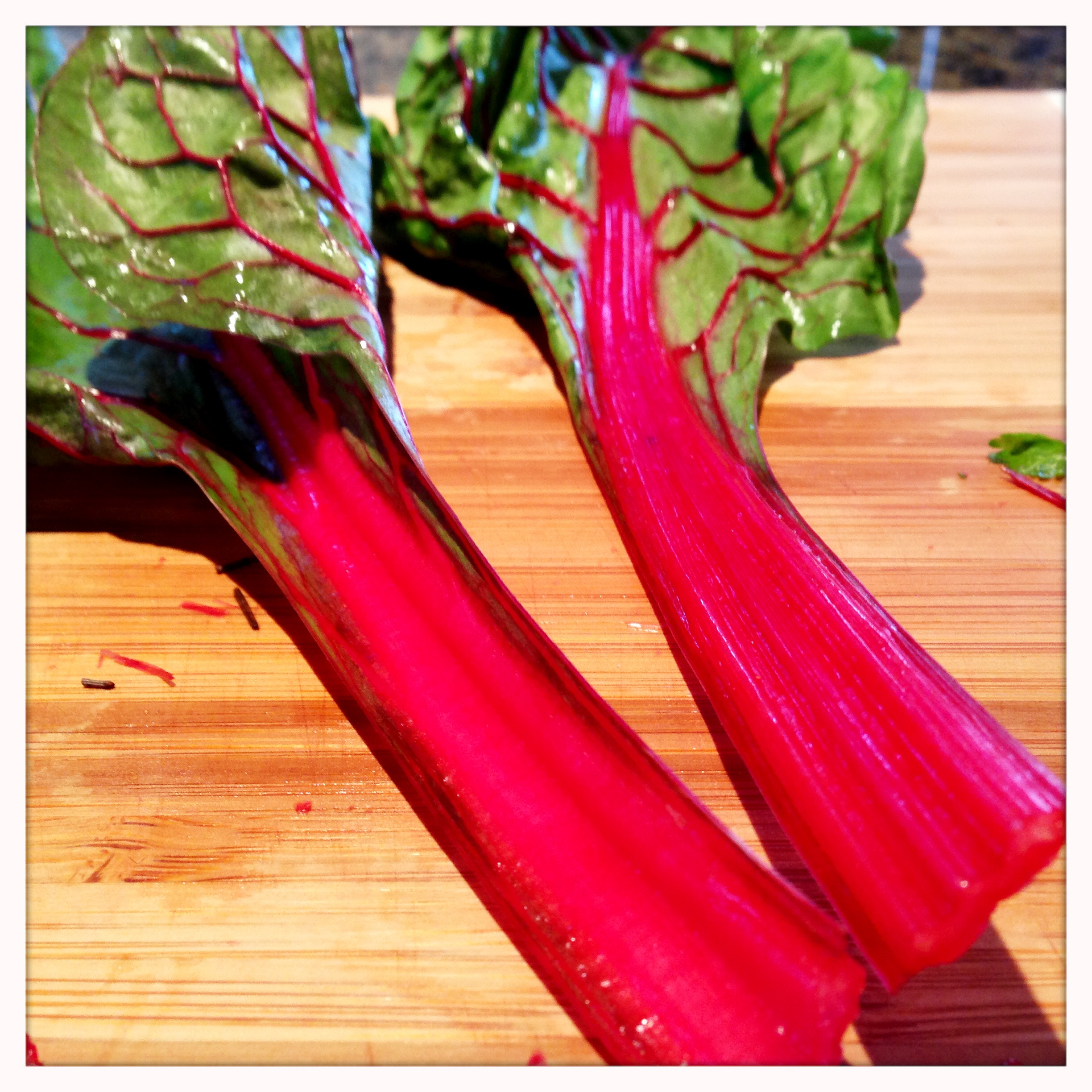While the oven is heating up and the pasta is cooking, we’ll work on the vegetables and sauce. If you’ve never worked with chard, you’re in for a treat. Both the stalks and the leaves are completely edible, and, while they share similar flavors, they both have their own unique qualities.