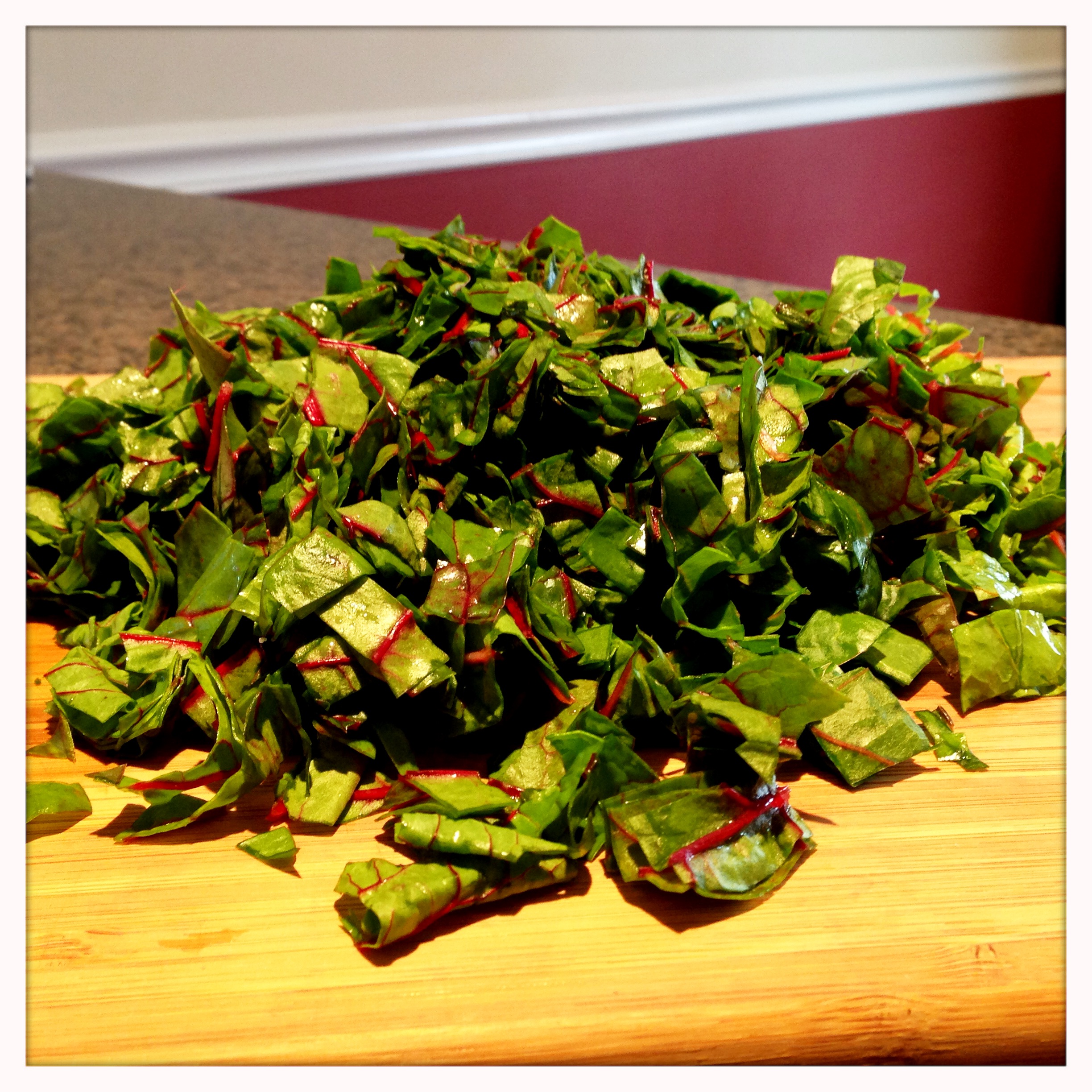 Set the greens aside for now. They will be the last thing we add to the sauce before placing everything into the oven.