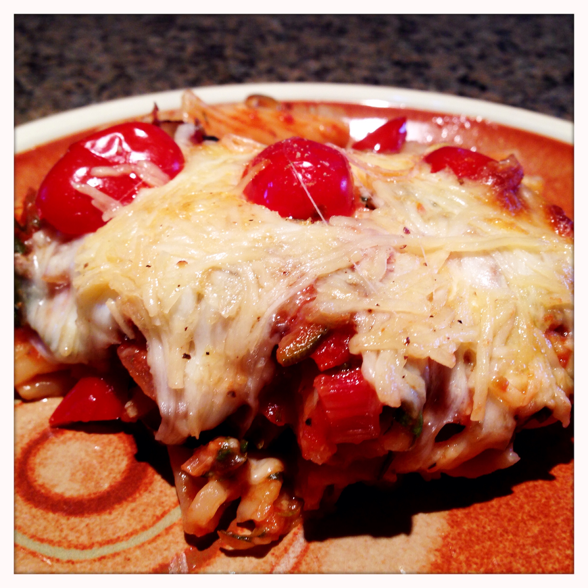 You may have noticed there is no pasta sauce listed in the ingredients. Instead, I went with some canned whole and strained Italian tomatoes. This provided a much fresher, brighter flavor, perfect for spring and an ideal match to the other vegetables in the dish.
