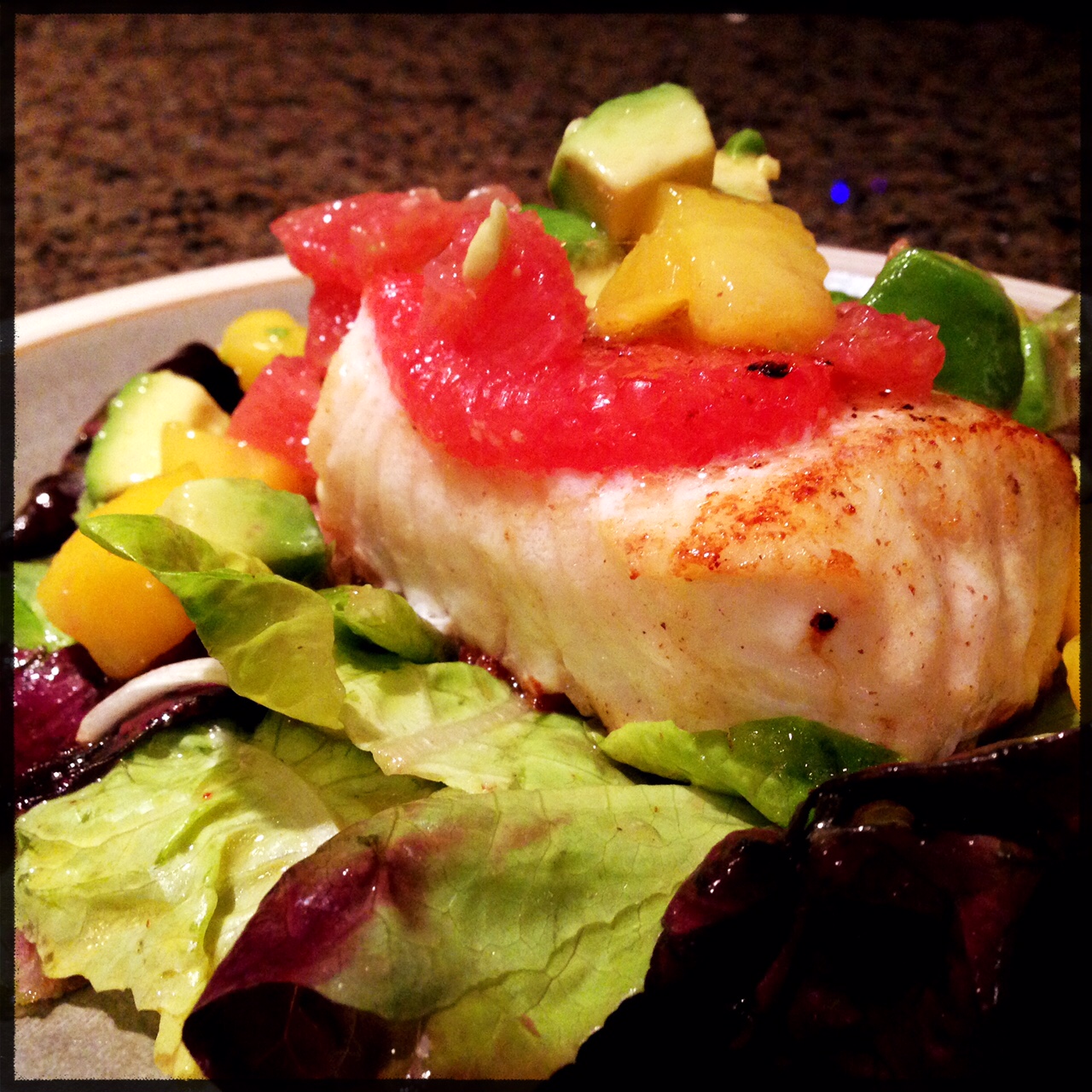 Chilean Sea Bass with Grapefruit, Mango and Avocado Relish