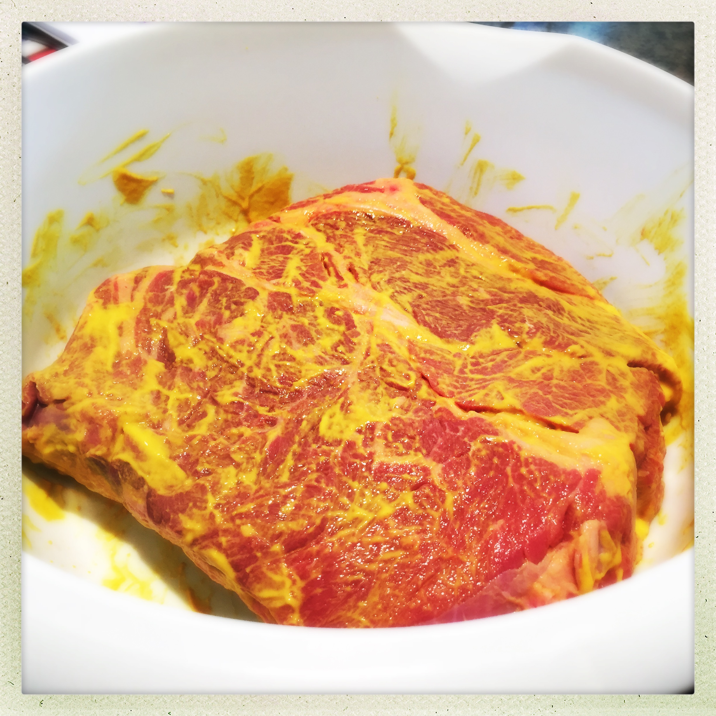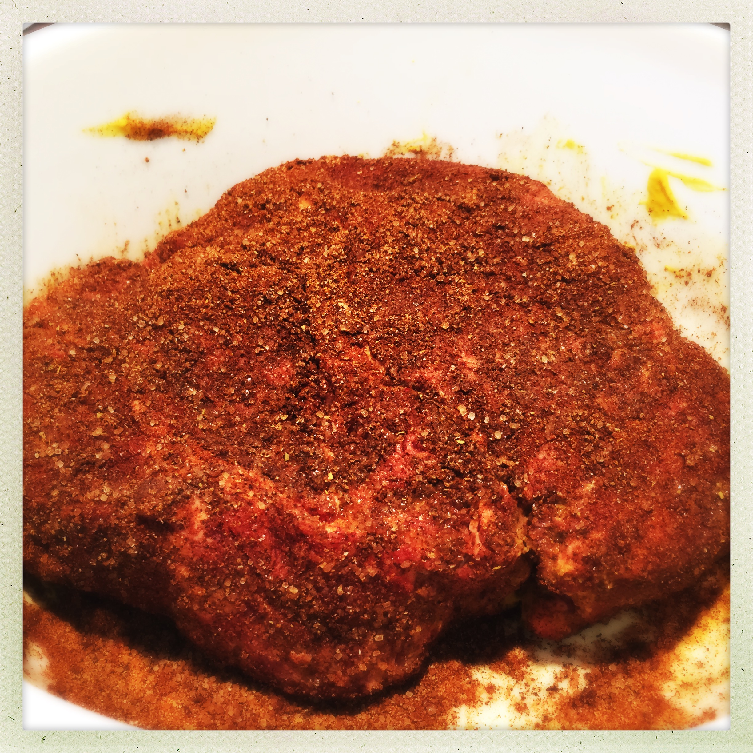 I rubbed down the meat with some plain yellow mustard to help the rub adhere