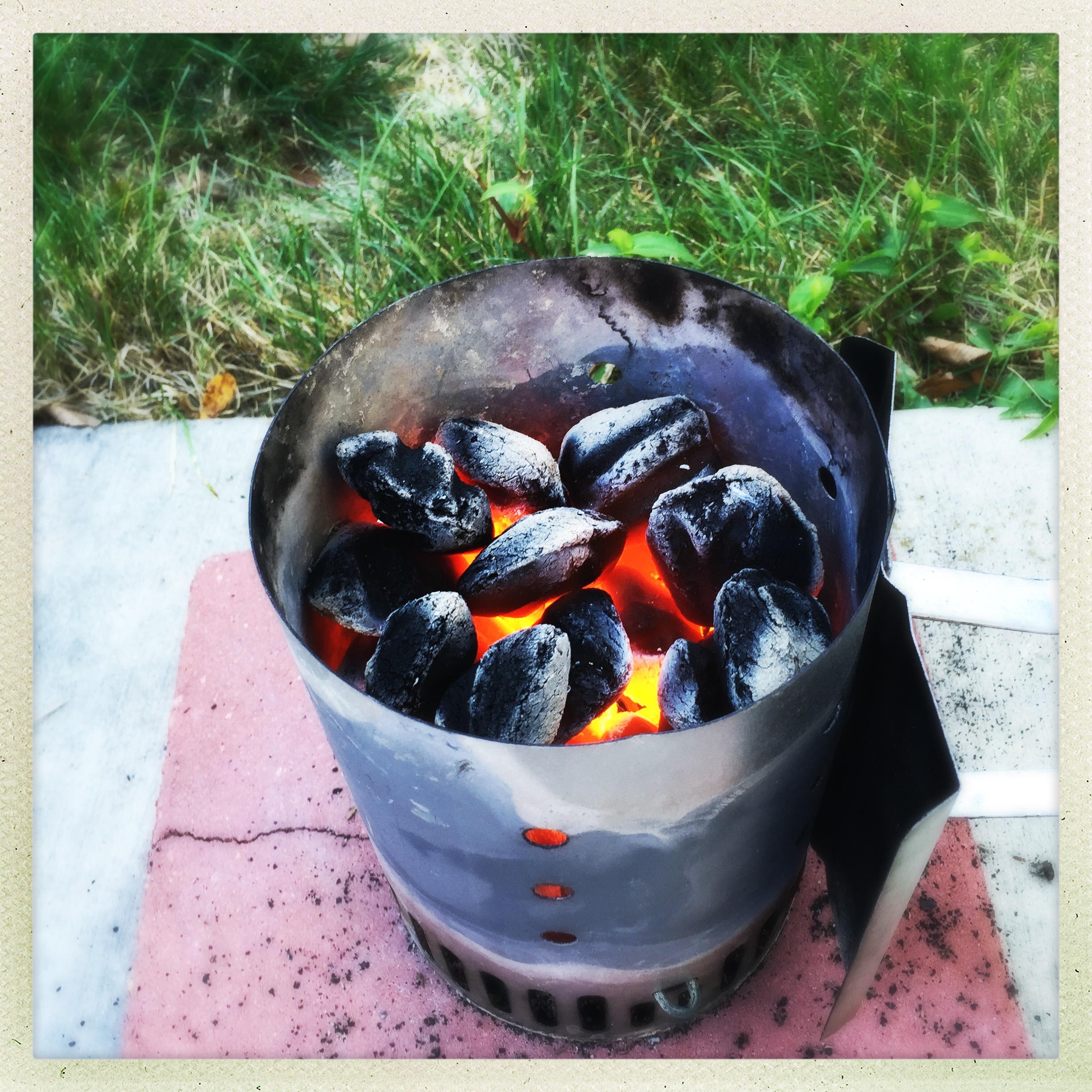 I let the meat rest in the bowl after prepping it, and I headed outside to get the smoker going. I lit a small chimney of charcoal first, to get some coals hot.