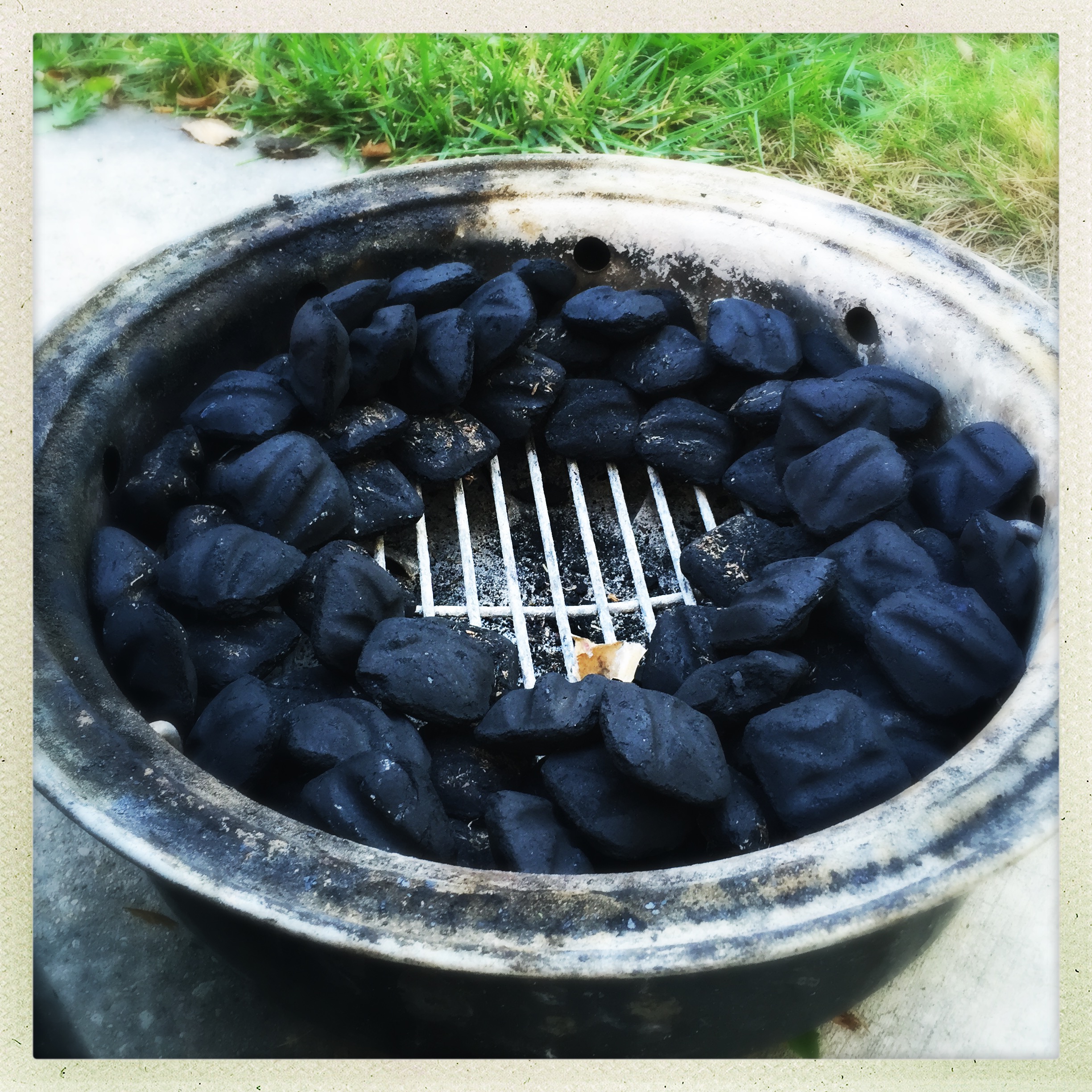 While the coals were getting hot, I loaded a ring of unlit coals into the charcoal basket of the smoker…