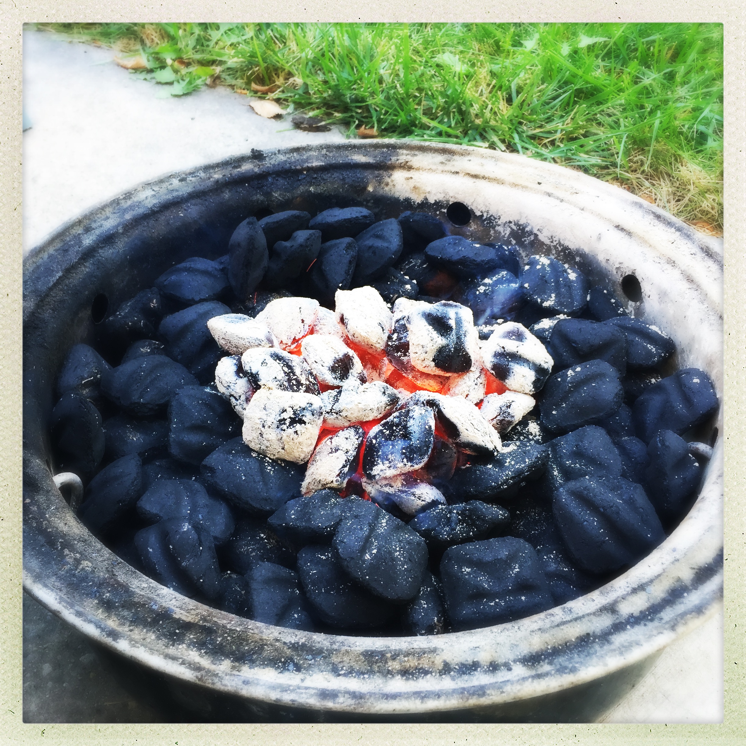 …and placed the hot coals in the center of the ring so that they would slowly ignite the remaining coals, keeping a steady temperature over the long cook time.