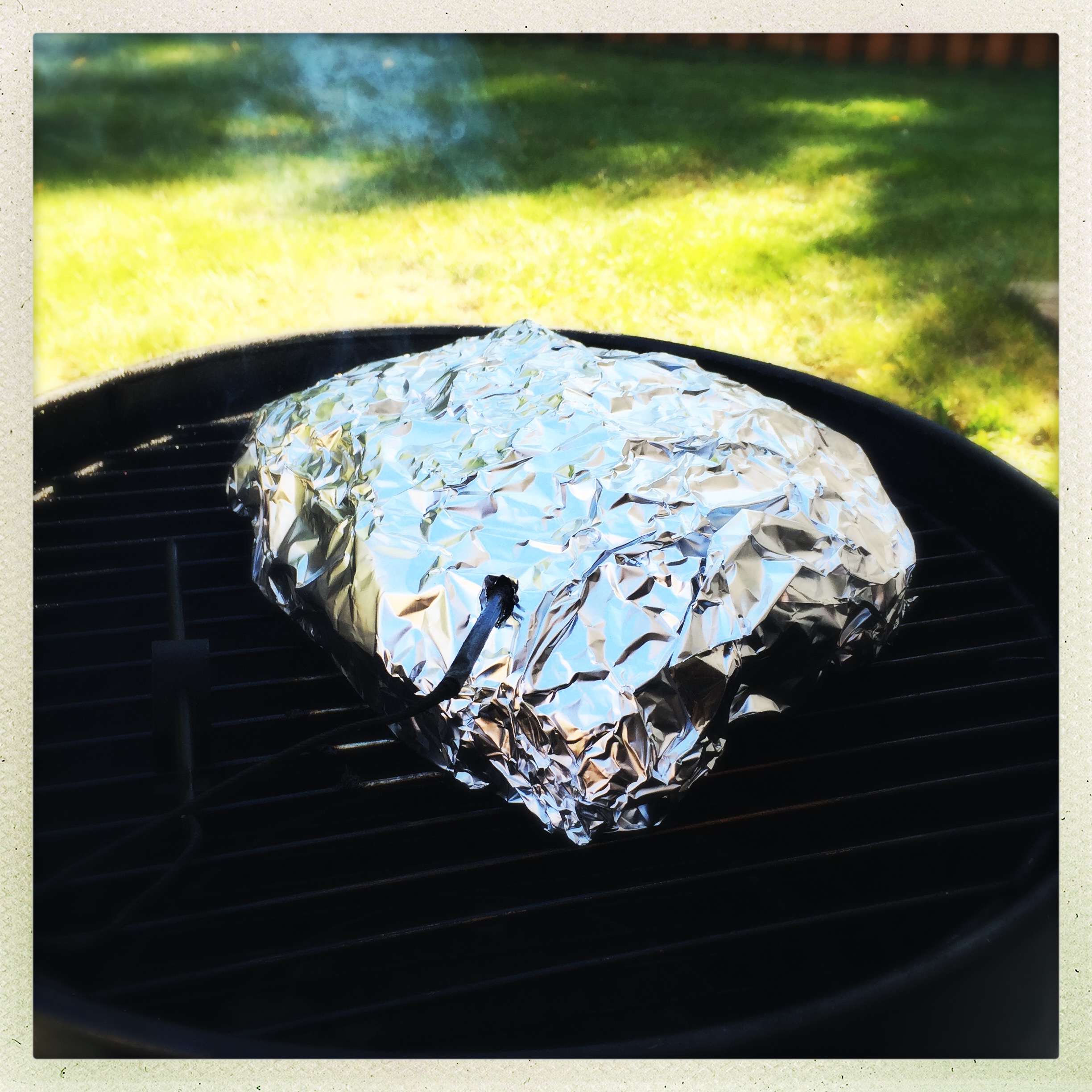 When the meat hit 160, I pulled it off and laid it on two sheets of heavy duty foil.